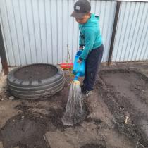 14.05.2021 - 3-сынып оқушысы Мұқан Айша анасымен бірге үйінің маңайына ағаш көшеттерін отырғызды